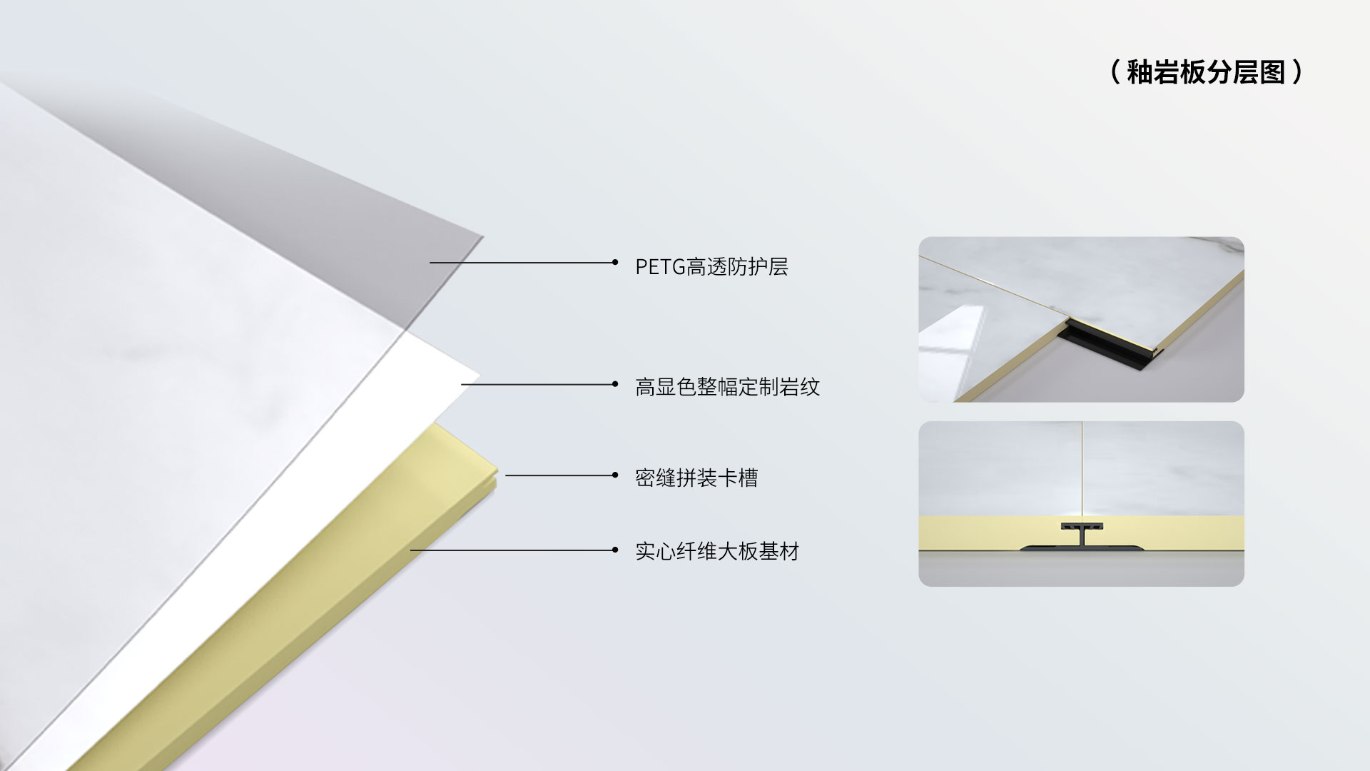 釉岩板采用的是喷墨印刷工艺,可以完美再现天然大理石的色彩纹理,甚至稀有的特定花色,同时改性处理天然大理石色差、色斑、污点、纹裂等缺陷,叠加PETG透明非晶型共聚酯,带来更自然明亮的瓷釉光泽,从再现到超越,以科技力量升级自然之美!